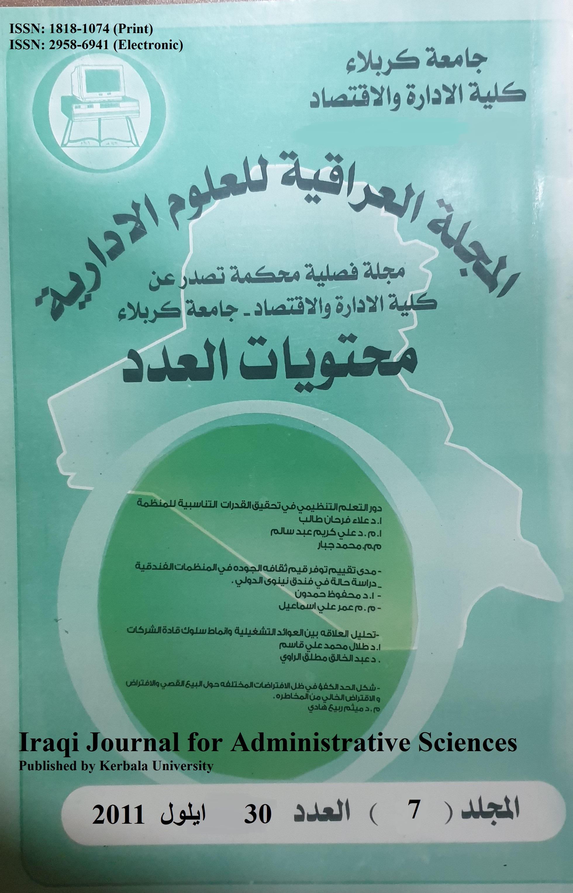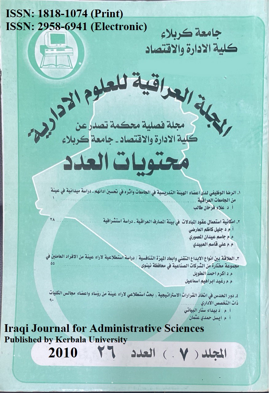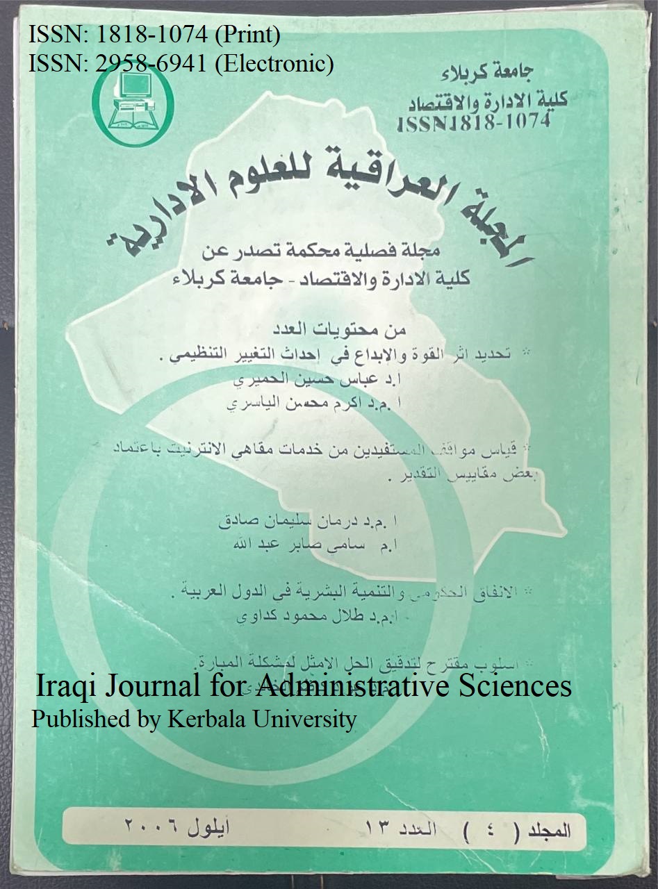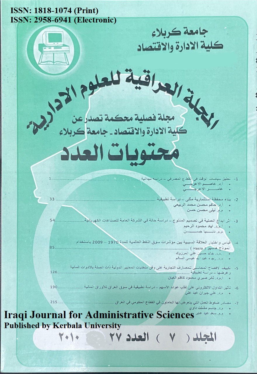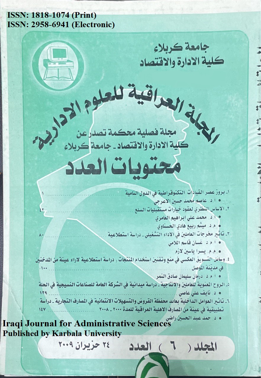 مجلد 6 عدد 24 (2009)تتناول هذه المجموعة من التحقيقات العلمية التحديات التنظيمية المتعددة الأوجه في المشهد الاقتصادي العراقي. يدرس الباحثون بدقة نماذج القيادة وآليات السوق وديناميكيات القوى العاملة من خلال منهجيات تجريبية صارمة. وتتناول الدراسات مجالات بالغة الأهمية بما في ذلك الحوكمة التكنولوجية وإنتاجية الموظفين واتخاذ القرارات الاستراتيجية والأداء المالي. ومن خلال استخدام تقنيات تحليلية متطورة، تسلط هذه الأعمال العلمية الضوء على التفاعلات المعقدة بين العوامل التنظيمية الداخلية والأنظمة الاقتصادية الأوسع. وتغطي الأبحاث قطاعات متنوعة - من التصنيع الصناعي إلى الرعاية الصحية والخدمات المصرفية - مما يوفر رؤى دقيقة حول الكفاءة التشغيلية والتخطيط الاستراتيجي والمرونة الاقتصادية في سياقات الأسواق الناشئة.