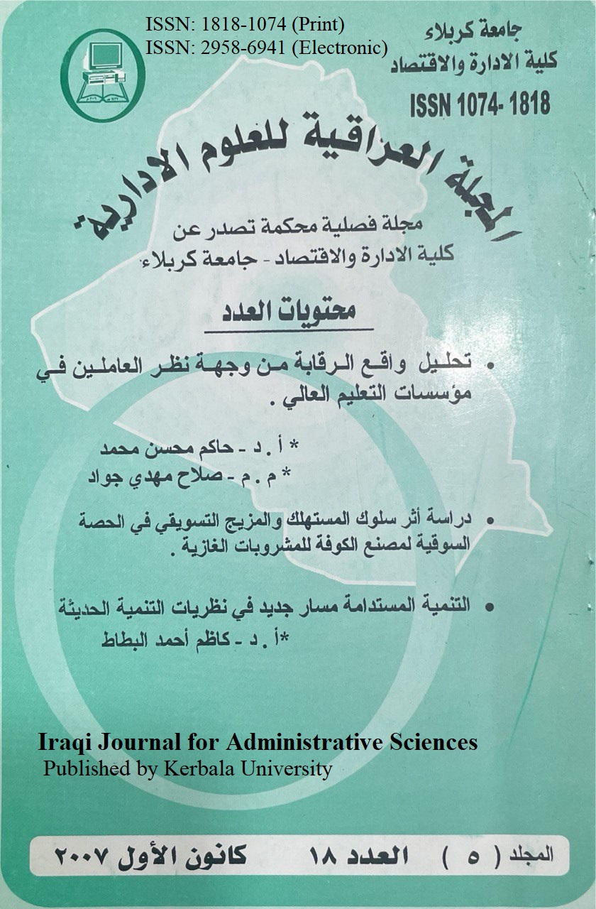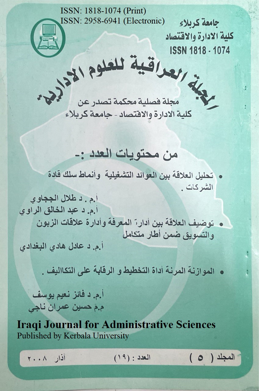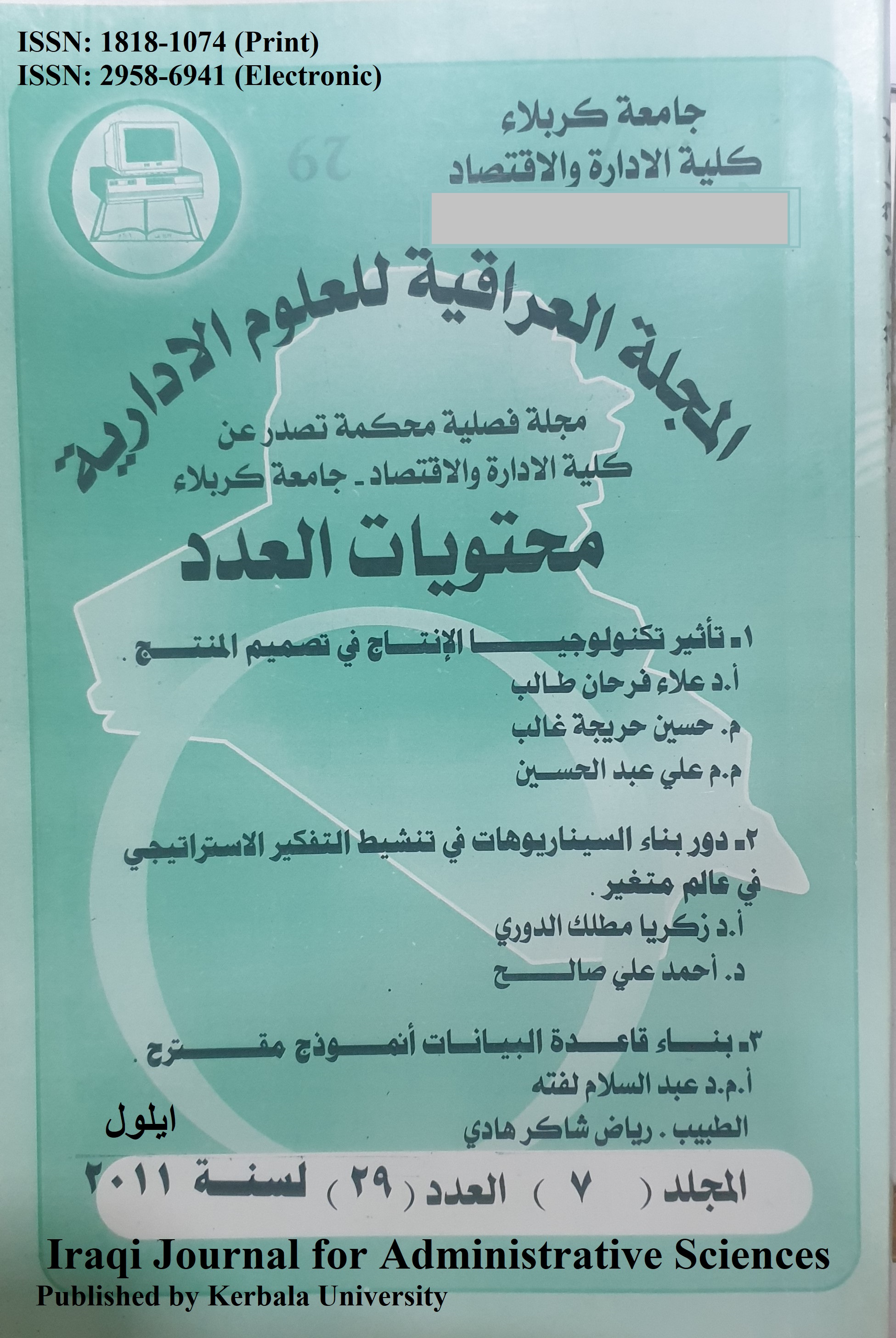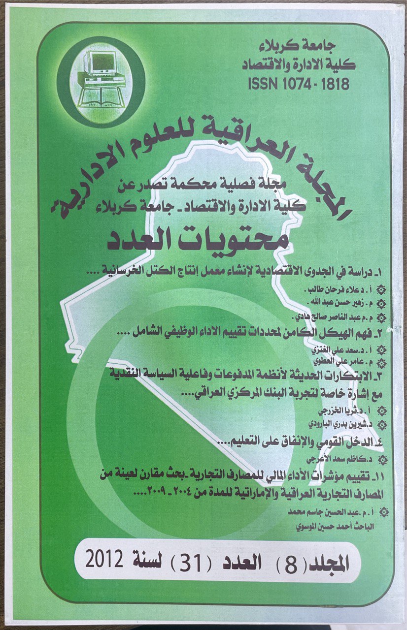 مجلد 5 عدد 19 (2008)تشمل العناوين المحددة مجموعة متنوعة من المواضيع في مجال الأعمال والإدارة، مع التركيز على جوانب مختلفة من أداء الشركات، والتخطيط الاستراتيجي، والكفاءة التشغيلية. وتتناول هذه الدراسات العلاقة بين الأنماط السلوكية لقادة الشركات والعوائد التشغيلية في الشركات الأردنية، مع تسليط الضوء على أهمية القيادة في تحقيق النتائج المالية. بالإضافة إلى ذلك، يتم استكشاف التكامل بين إدارة المعرفة وإدارة علاقات العملاء والتسويق داخل منظمات الأعمال العراقية، مع التركيز على أهمية اتباع نهج شامل للإدارة الاستراتيجية. كما تتناول العناوين تطبيق الموازنات المرنة كأداة للتخطيط والسيطرة على التكاليف الصناعية غير المباشرة، كما يتضح من دراسة أجريت في شركة الفرات للصناعات الكيماوية. علاوة على ذلك، يتم دراسة دور خدمات المكتبة وإمكانية الاستفادة من استراتيجيات التسويق، في حين يتم دراسة تأثير رأس المال المملوك والودائع على سياسات الإقراض لدى البنوك من خلال دراسة مقارنة لبنوك الاستثمار الأردنية والكويتية والراجحي الاستثمارية. يتم قياس الكفاءة الإنتاجية لشركة الفرات على مدى ثماني سنوات، ويتم عرض تطبيق تقنيات هندسة الجودة لتدقيق وتحسين عمليات الإنتاج من خلال دراسة في الشركة العامة للصناعات النسيجية في الحلة.
